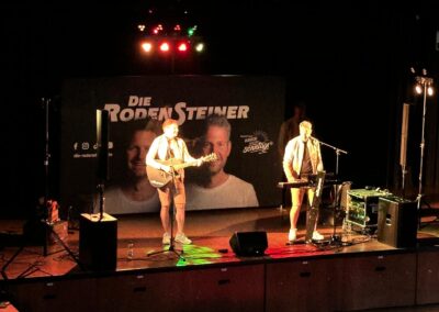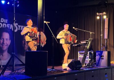 Eigene Songs, wie „Mal läuft es super“, „Noch einmal zum Himmel“ und ihr neuster Hit, „Bella Italia“ heizten die Stimmung weiter an. „Dich zu lieben“, „Sierra Madre“, „40 Jahre, die Flippers“, „Dem Land Tirol die Treue“, aber auch „Wackelkontakt“ und viele, viele mehr sorgten für einen wunderschönen Abend. Schon „im Mai“ angekommen ließ das tolle Publikum, in dem alle Altersklassen vertreten waren, die beiden Musiker erst nach der dritten Zugabe endgültig von der Bühne.