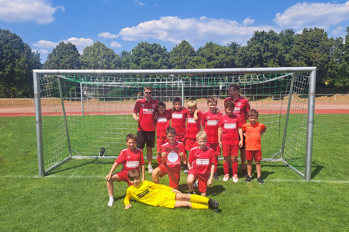 Die E-Jugend der Spielgemeinschaft hat in der abgelaufenen Saison das Double erreicht. Nach dem relativ souverän erzielten Kreis-Meistertitel konnte am 15.05. auch das Pokalfinale gewonnen werden. Der Titel des Kreis-Meisters berechtigte zur Teilnahme an den Bezirksmeisterschaften, die am 17.06. in Alsbach ausgetragen wurden.